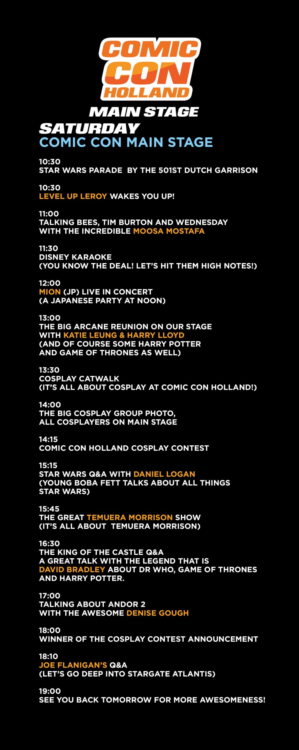 11:00 | Deuren openComicCon Holland biedt een geweldige ervaring voor liefhebbers van comics, films, televisie, games, cosplay, strips, manga en meer. |